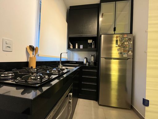 Cozinha e sala integradas, com excelente aproveitamento de espaço